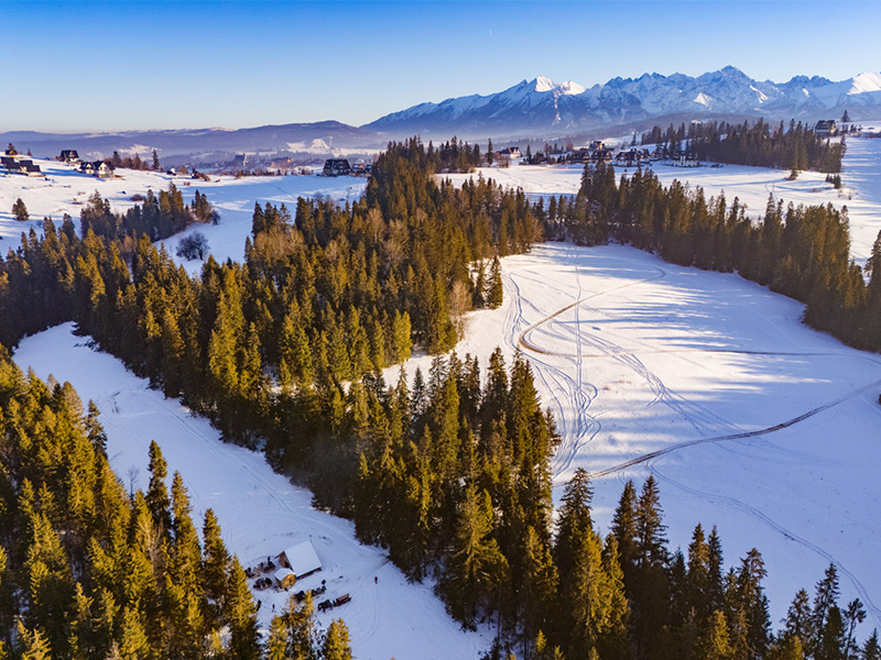 Kulig odbywa się malowniczymi, ośnieżonymi polankami Bukowiny Tatrzańskiej, prowadząc do pięknego, świerkowego lasu. Trasa ta, pokryta miękkim, białym puchem, zapewnia poczucie oderwania od codzienności i stwarza bajkową scenerię dla Waszej uroczystości. Sam przejazd to już niezwykła atrakcja: ciepłe koce, dzwoniące sanie i odgłos kopyt koni sunących przez zimowy krajobraz.